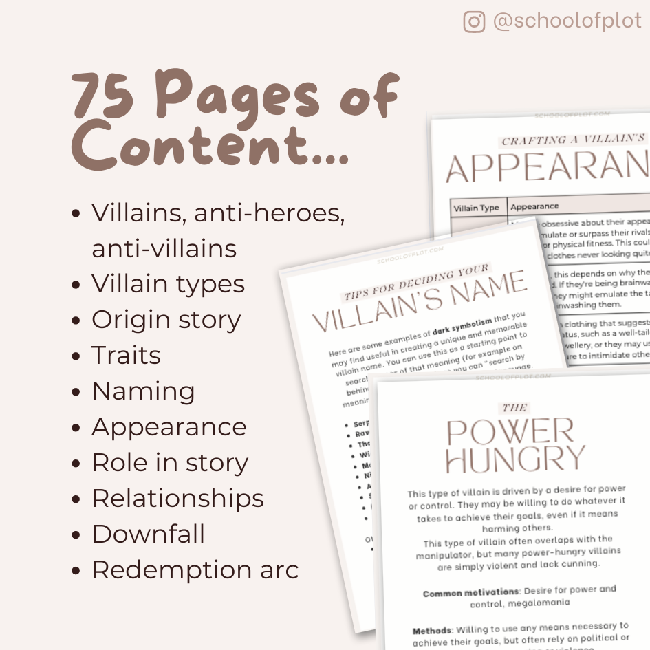 The “villain” workbook could be used as a great guideline to construct and further develop your villainous characters, whether you have yet to begin writing your story or you have already finished it. I found it especially useful to explore certain facets of my character that I would have not thought about otherwise. The only negative thing I feel like pointing out is the fact that some questions were pretty similar, therefore they required almost an identical answer. But besides that, the workbook was really well done!